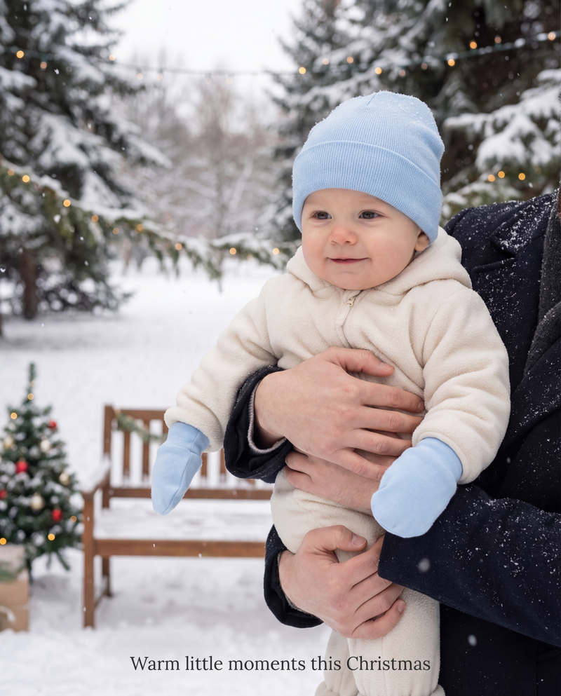 β All-in-one warmth hat + mittens to keep baby cozy during outdoor trips